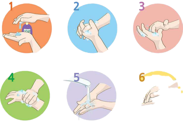 1保持手卫生。饭前、便后、加工食物前应按照6步洗手法正确洗手,用肥皂和流动水至少洗20秒,但需注意,含酒精消毒纸巾和免洗手消毒剂对诺如病毒无效,不能代替洗手。