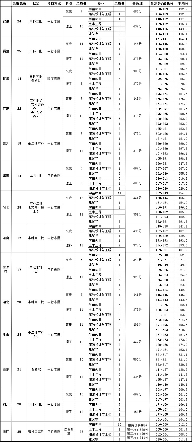 2018年 分省普通类录取情况