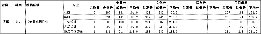 2020年西藏 艺术类录取情况