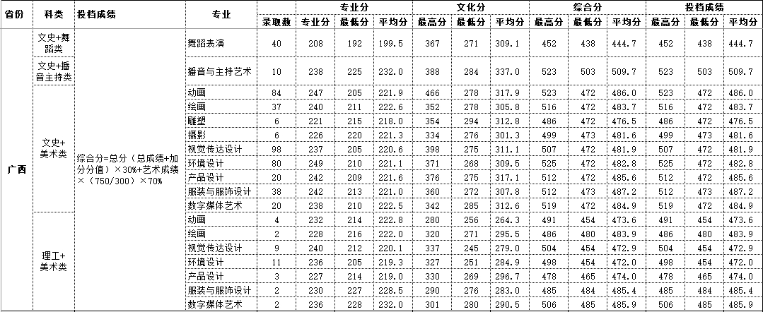 2020年广西 艺术类录取情况