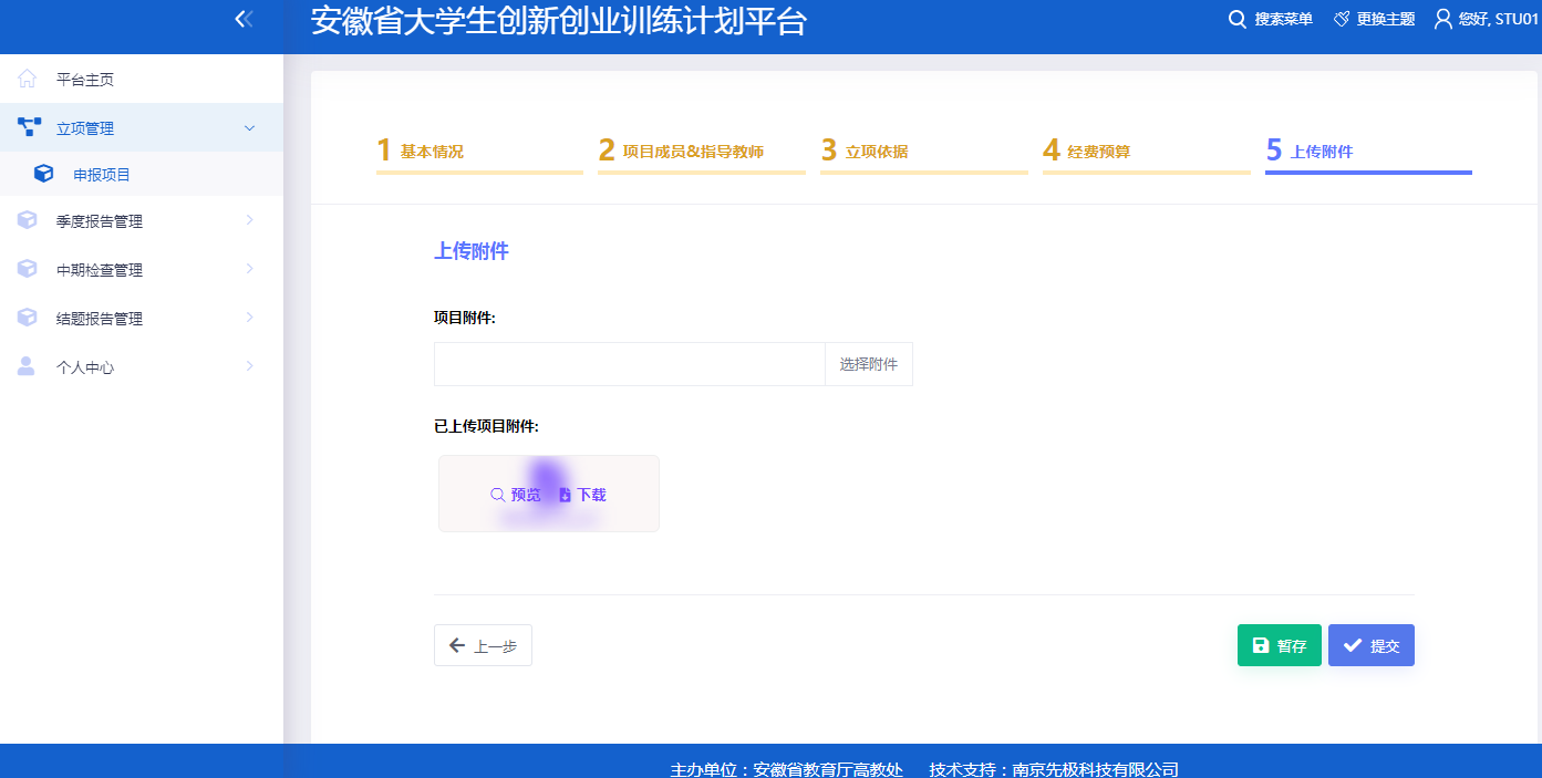 所有申报数据、附件材料无误后,点击提交完成项目申报。