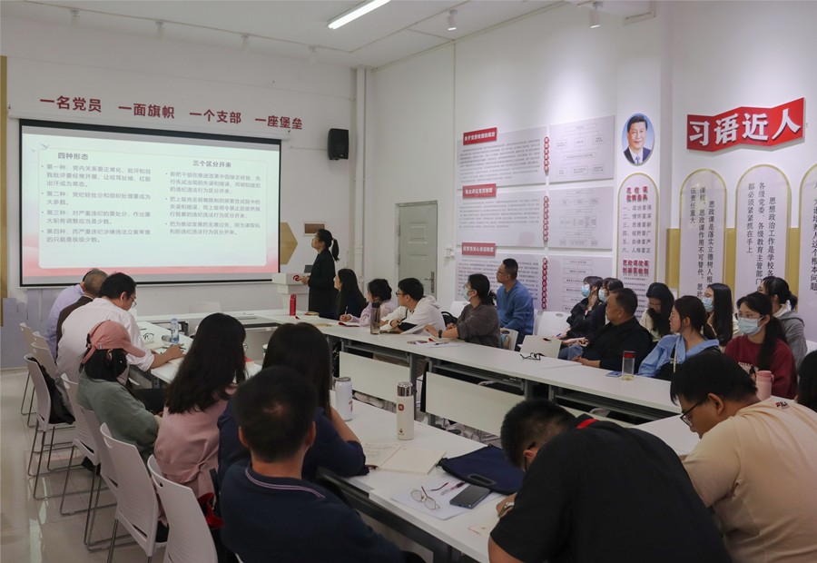 为深入贯彻落实全面从严治党要求,切实增强全体教师的纪律意识,3月22日下午,马克思主义学院党支部书记罗秋梅在行政楼103以《学习贯彻<中国共产党纪律处分条例>:把从严管理监督和鼓励担当作为统一起来》为题开讲第一季度专题党课(以下简称《条例》),学院全体教师参加。