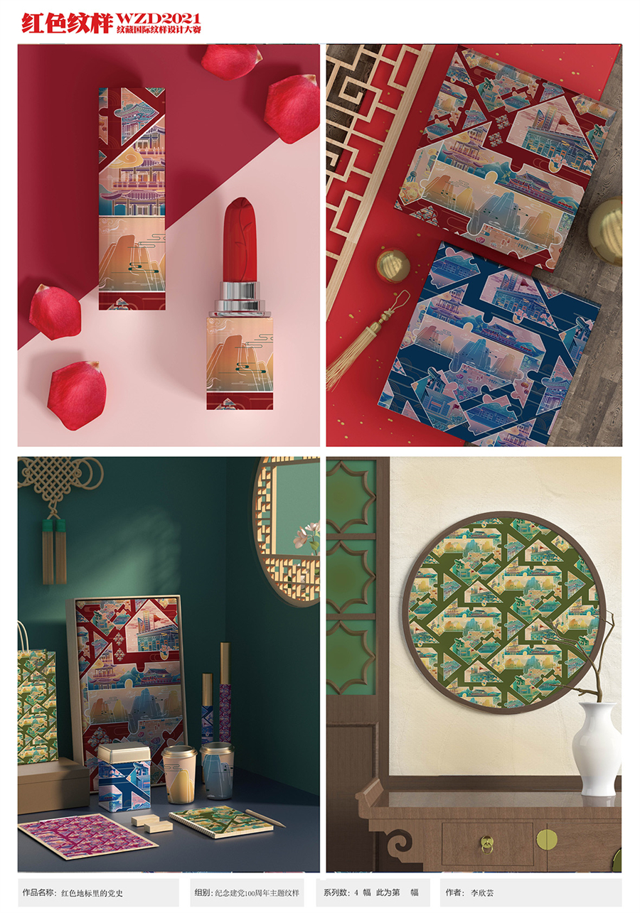 喜报||我校学生作品《红色地标里的党史》获得第二届纹藏国际纹样设计大赛银奖