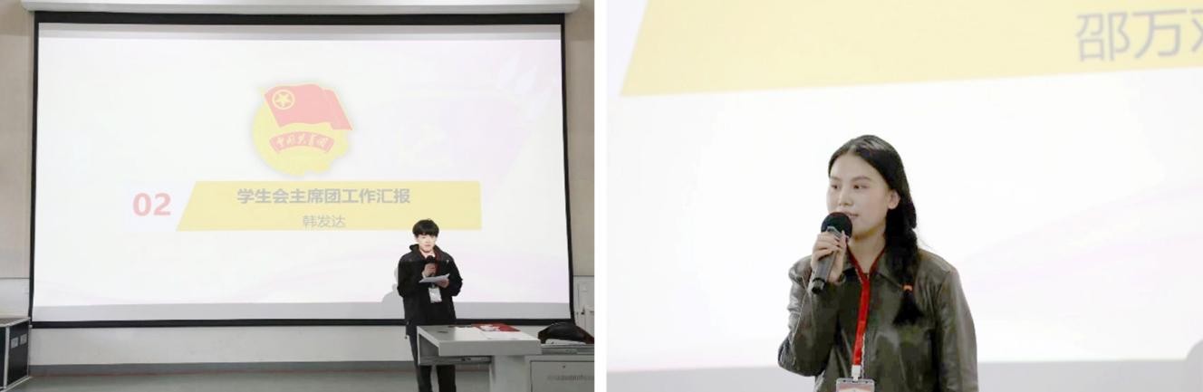 大会第二项,首先由主席团代表韩发达对上学期分团委学生会各部门的工作情况进行了总结汇报。接着,邵万欢主席对学生会各部门的职位职责进行了细致的讲解:学生会围绕学校的中心工作,积极开展各项活动。在学生权益维护、校园文化建设等方面发挥了重要作用。积极参与学校的管理工作,各部门各司其职,为学校的发展贡献了自己的力量。