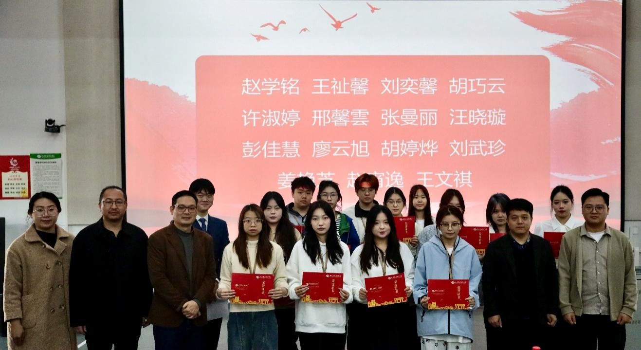 大会第四项,颁奖典礼。各位领导为赵学铭、王志新、刘艺昕、胡巧云等人颁发荣誉证书。他们以实际行动诠释了奉献与拼搏的精神,其辛勤耕耘的汗水不仅滋养了个人的成长之路,更为学院的繁荣发展奠定了坚实的基础。这些不仅是对他们过往努力的认可,也将激励新一届的成员们秉承前辈的热情与执着,继续在学校及学院的舞台上发光发热。