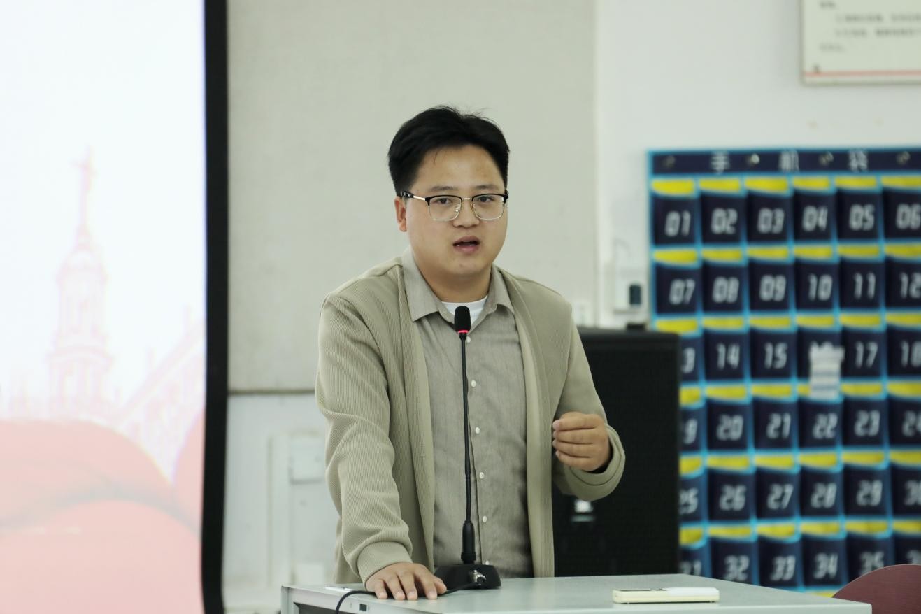 会议的第一项进程由建筑与环境艺术学院学生第二党支部书记、分团委副书记陈宣辰老师发言,她重点强调了提高政治觉悟以及保持初心的重要性。鼓励同学们主动培养独立解决问题的能力,积极参与各类活动、主动交流学习,在探索中发掘兴趣潜能,一步步向理想靠近。同时,倡导大家“工作上追求卓越,做人上保持谦逊”,在彰显学院特色的同时,以团结协作之力实现共同进步。
