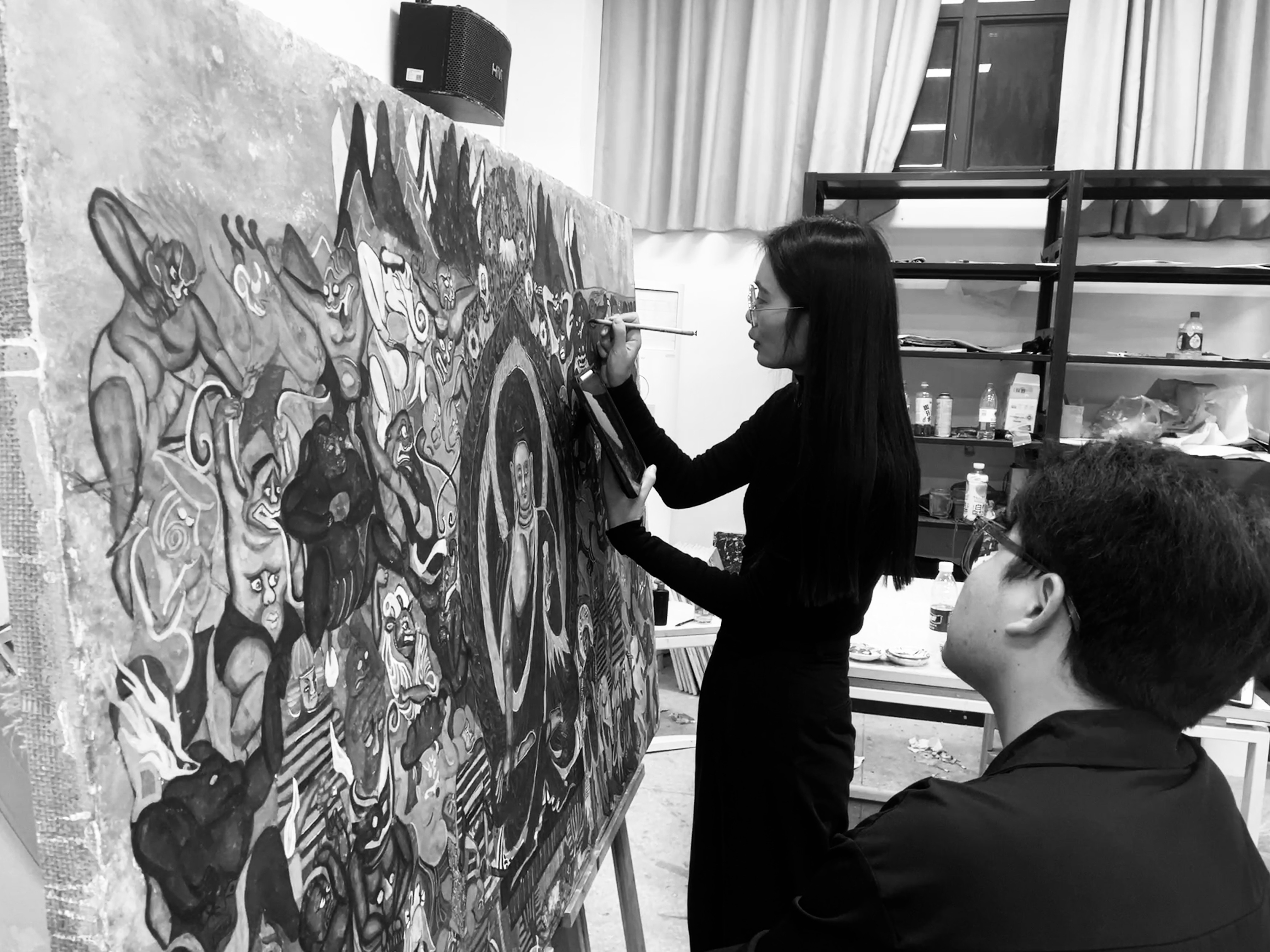 胡童童,2019年毕业于西安美术学院中国画学院,2022年毕业于中央美术学院壁画系,2022年至今任教于北海艺术设计学院美术学院。