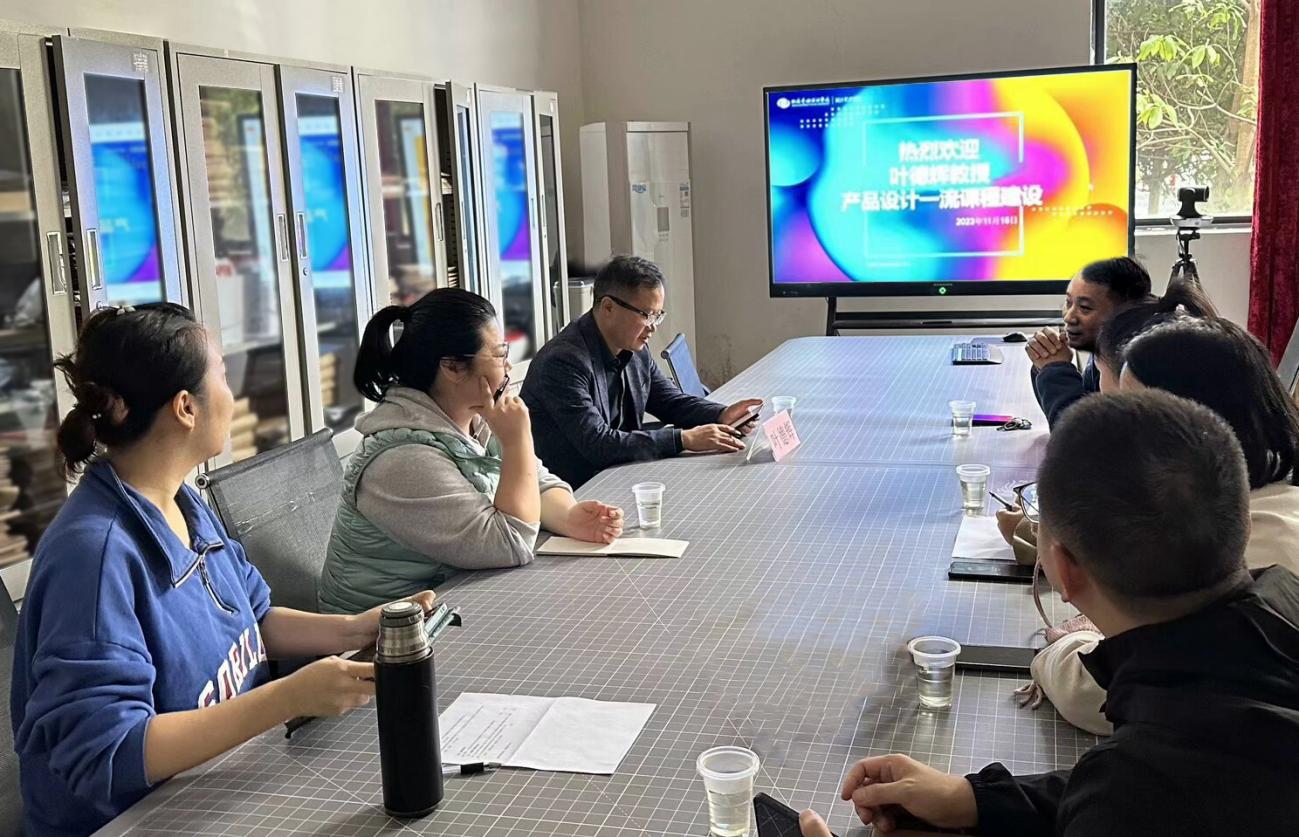 会上,邓渠成主任对产品设计专业进行了简要介绍,叶德辉教授就专业建设与老师们进行深入地探讨。叶教授结合所在学院的产品设计专业课程调整设置后的感悟,向与会老师分享了自己多年的专业建设经验和心得体会。他强调,专业建设必须找准自身的定位和特色,紧密结合地方特点和需求,积极探索专业的融合发展路径,长期坚定地贯彻教学思想,并针对产品设计专业的特点,推进专业建设的针对性和实效性。同时,应积极与行业企业保持密切联系,通过多种渠道和不同层次实现校企共建课程的开发。此外,教师自身的专业知识和素养在专业建设中扮演着重要角色,专业建设也要注重教师团队的培养,鼓励教师不断思考完善自己的教学方式和方法,推动自身和专业的发展。参会教师就教学与科研融合、课程特色、线上线下课程推广等问题与叶德辉教授进行了交流和讨论,气氛热烈。