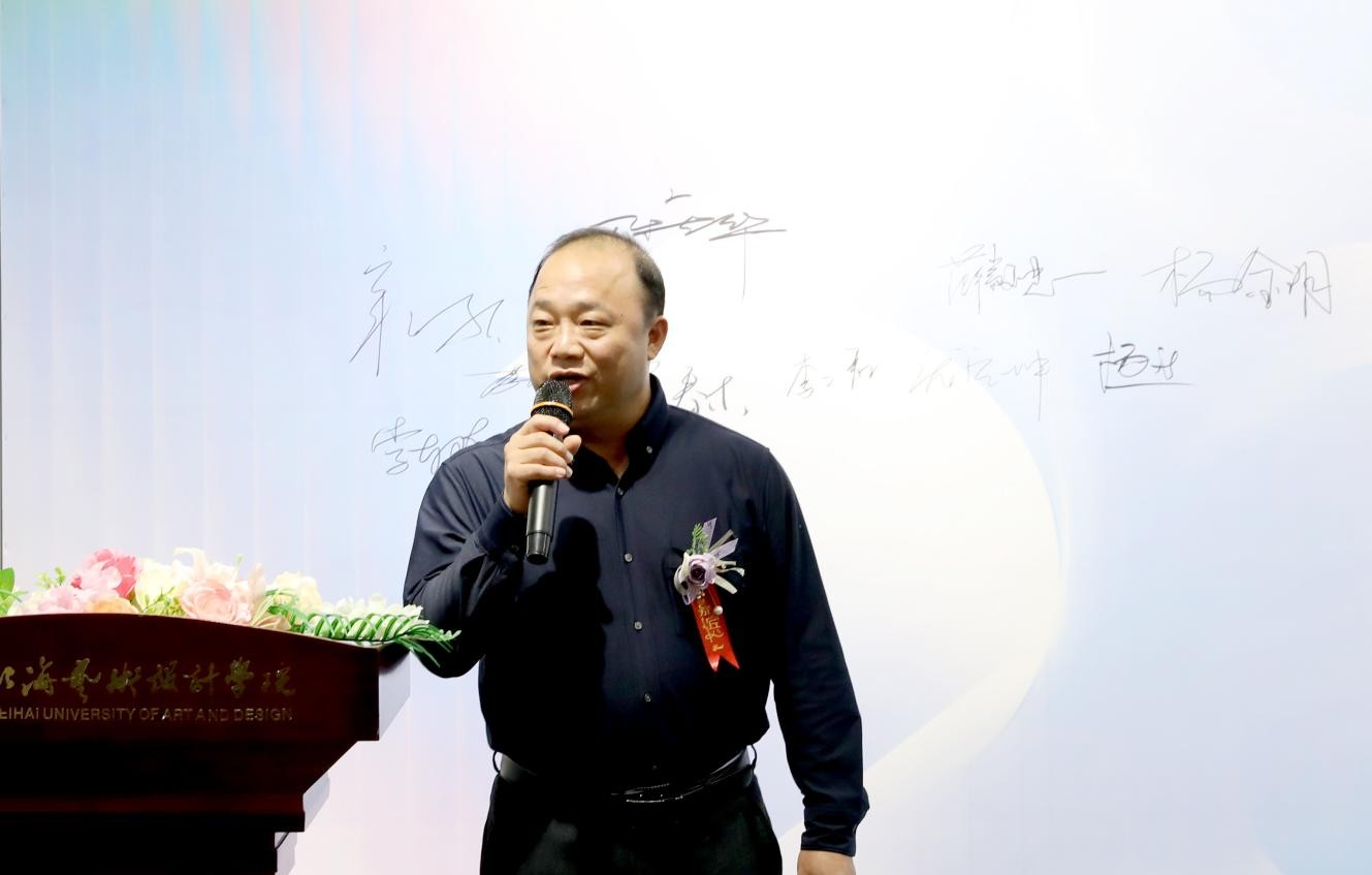 活动第二项,由校长卢新华为本次开幕式致辞。卢校长对课程组在培养学生的创意思维和设计能力方面做出的努力进行了肯定。在同学们的作品中,可以看到对中华优秀传统文化的传承和弘扬,体现出学生自身审美情趣和文化自信的提高。希望同学们能够将课堂上所学到的知识和技能运用到今后的设计实践中,学以致用,不断创新。