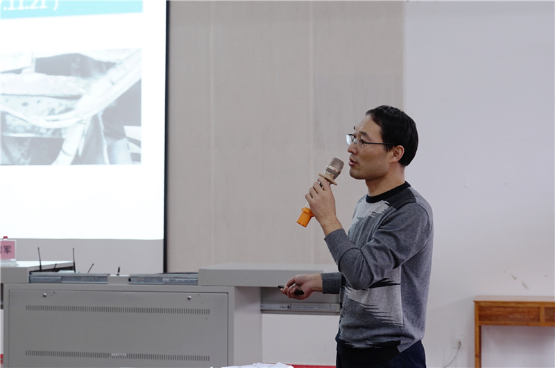 接着,常岩军教授向我们简单介绍了损伤断裂力学的基础理论、分类及演化过程。演示讲解过程中,常教授通过简易的纸片撕裂试验使同学们加深了对损伤断裂力学理论的了解;通过图片展示了近年来的建筑工程损伤断裂实例,在风、雪、雨等自然因素或其他人为因素的影响下,使建筑物产生损伤或部分损伤,另外由于建筑本身构造的不稳定和偏差往往也会对建筑物产生损伤,并详细讲解了桥梁病害和地基病害。