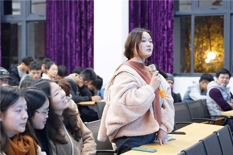 最后,现场提问环节刘杰教授与同学们积极互动交流,他谈到将无形转化为有形的方法就是通过各种具体的设计来展现最初的想法,将所有的想法通过细节展现出来,我们在学习阶段的积累是十分重要的,刘教授的讲解使在场同学受益匪浅。