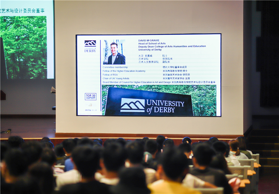 2019年9月16日(星期一)晚上7点30分于我校西校区大礼堂,英国德比大学艺术学院常务院长大卫·麦葛威(DAVID McGRAVIE)受邀到我校作一场题为《在英国艺术设计的画廊中驰骋》的讲座,现场座无虚席。本次讲座由胡胜副校长主持。