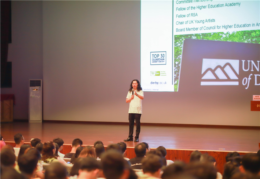 讲座开始时,大卫.麦葛威院长表示,他将介绍英国的艺术设计是如何将传统和现代以及工业化有机融合,也希望通过讲座能让同学们获得与自己专业相关的内容,对未来研究的方向有所启迪。