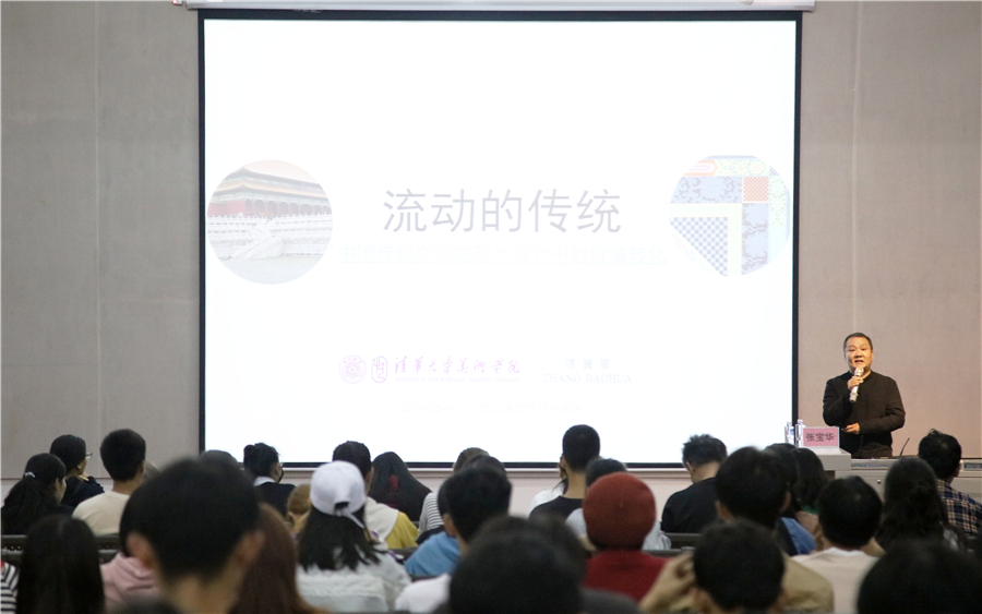 2019年12月16日晚7:30于西校区伦理楼107,清华大学美术学院博士生导师张宝华教授为我校师生带来了一场题为《流动的传统》的精彩讲座,现场座无虚席。本次讲座由我校副校长王斌主持。