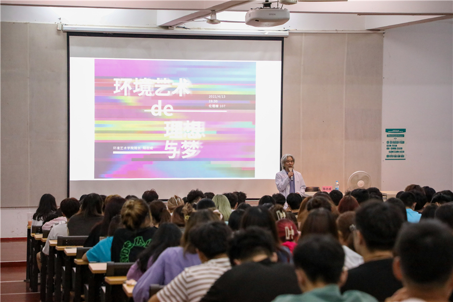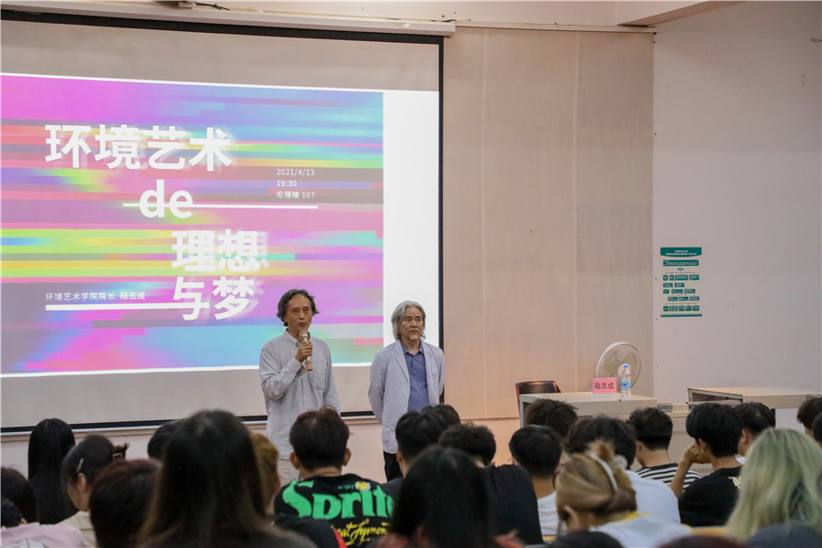 2021年4月13日于我校西校区伦理楼107,我校环境艺术学院院长陆志成为我校带来一场题为《环境艺术的理想与梦》的讲座。本次讲座吸引众多师生聆听,现场座无虚席。本次讲座由校长卢新华主持。