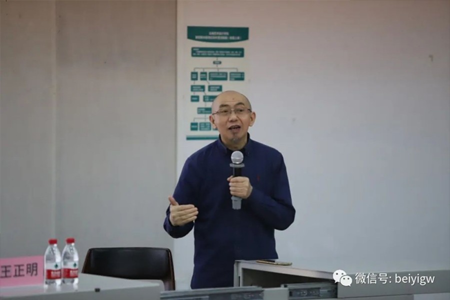 讲座伊始,王正明教授详细介绍并解读了讲座主题的深刻含义。他结合自身的经历和工作经验,同在场师生分享了自己对设计的感悟,并通过多个角度分析“设计的根本、设计背后的因素是思想”这一概念。