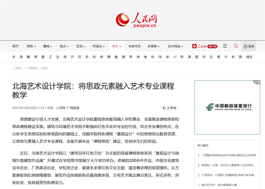 《人民网》:北海艺术设计学院将思政元素融入艺术专业课程教学