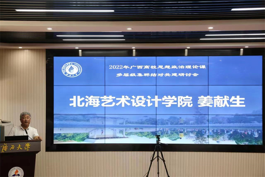 4月23日,广西2022年思想政治理论课多层级集群结对共建研讨会在广西大学马克思主义学院举办。本次研讨会邀请国内高校马克思主义理论学科领域知名专家开展专题讲座,与会人员围绕实践教学经验开展了研讨交流。北海艺术设计学院作为集群结对共建高校成员参加此次研讨会,并在会上作经验交流发言,分享展示北海艺术设计学院作为一所民办艺术类应用型高校在思政课实践教学方面的创新特色做法。