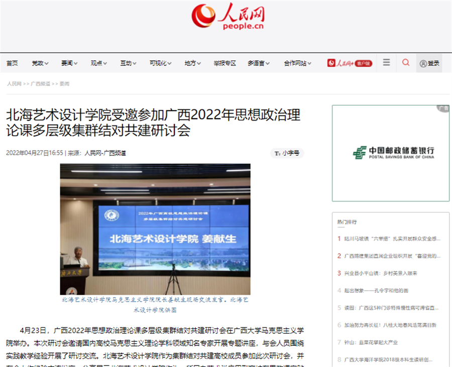 人民网:北海艺术设计学院受邀参加广西2022年思想政治理论课多层级集群结对共建研讨会