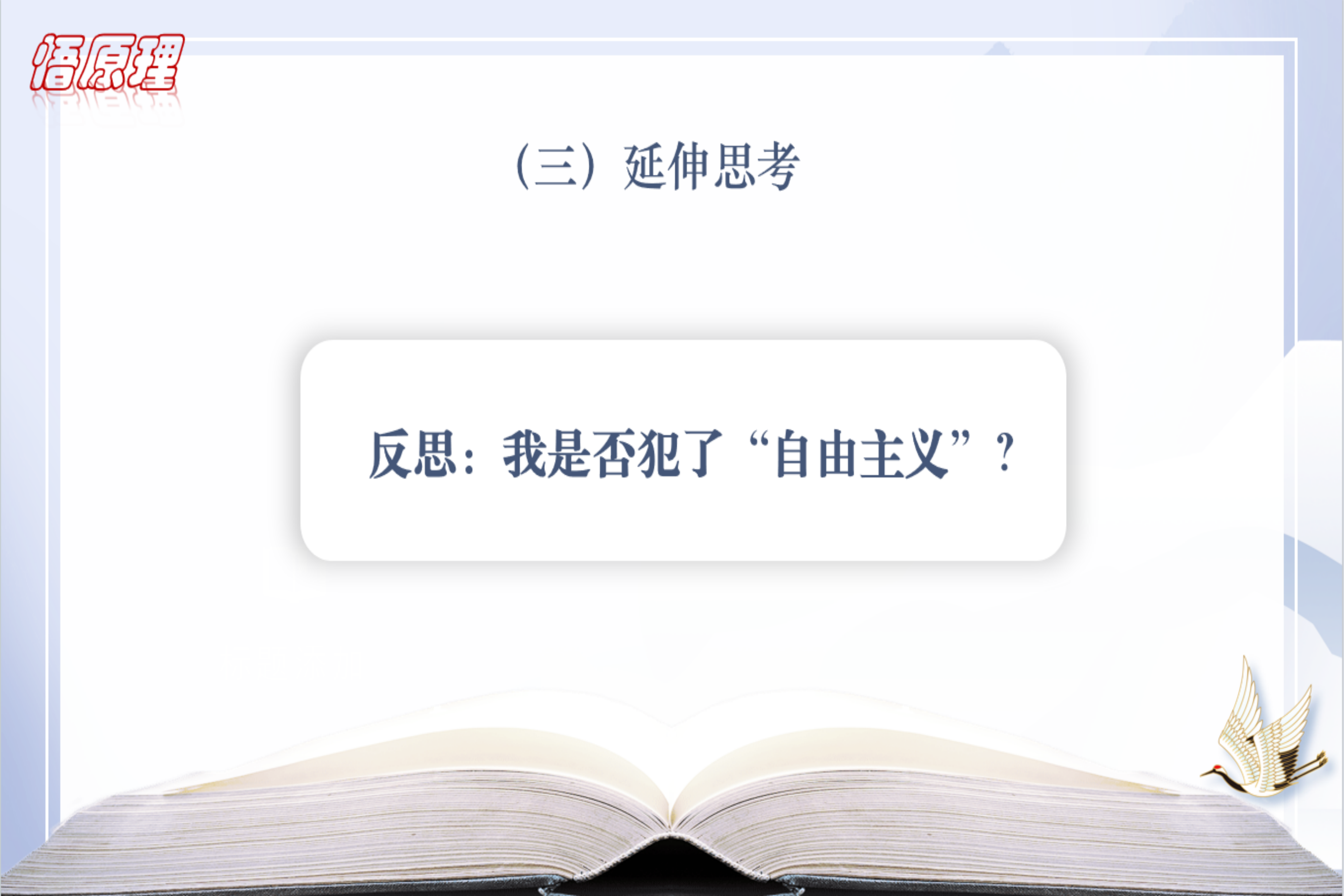 在随后的研讨环节,全体中青年教师围绕此次分享内容,结合自身工作实际展开热烈讨论,自我批评、剖析不足,凝聚思想共识。大家一致认为,作为思政课教师要严守纪律、杜绝自由主义,筑牢思想防线、深耕教学,将学习成果转化为育人实效。