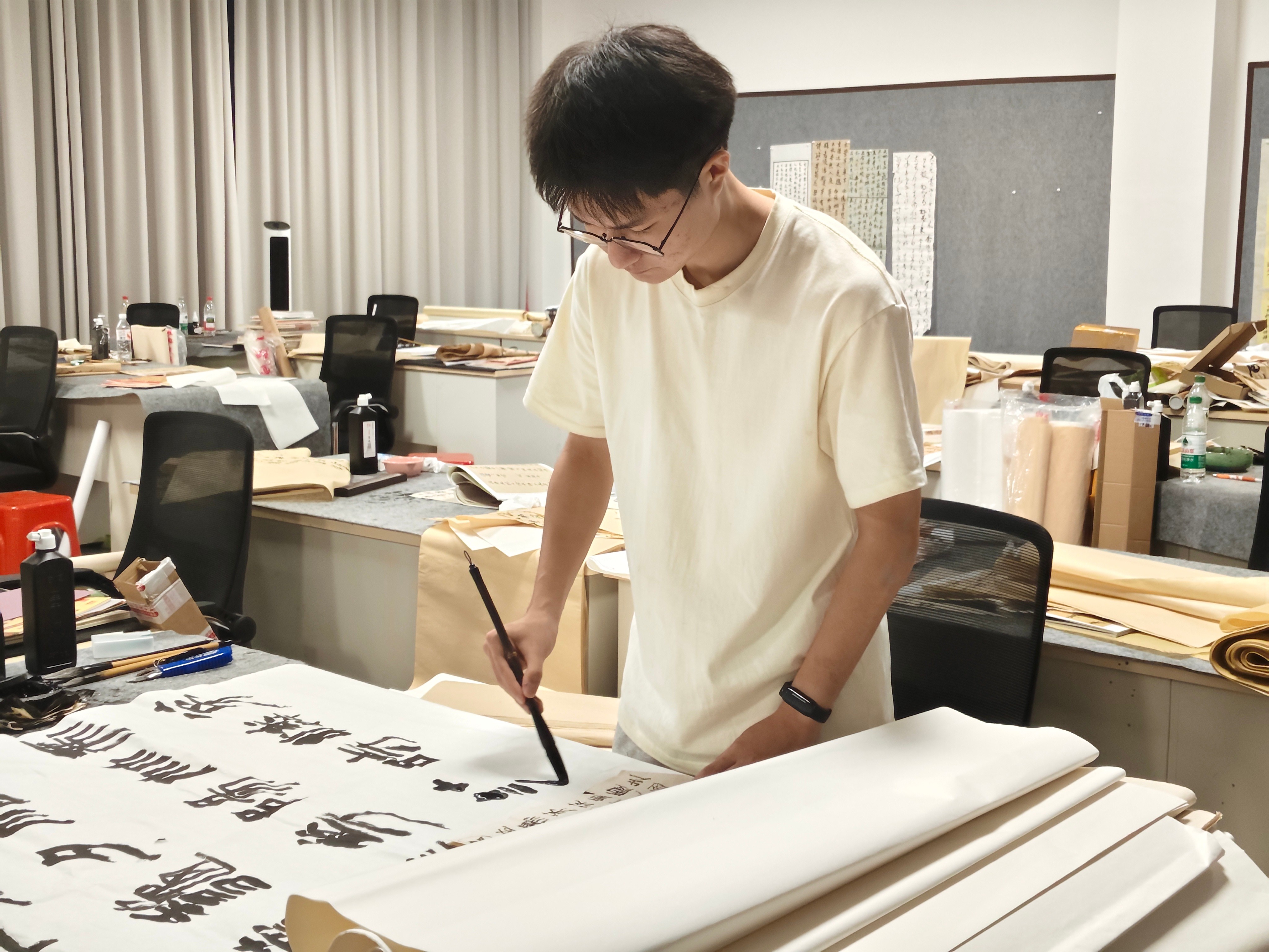 作为一名大三学生,周煜恒同学怀着对传统的敬畏之心与对技艺的执着追求,在笔墨世界里走出了一条既重传承、亦求突破的探索之路。身为江苏省书法家协会会员、徐州市书法家协会会员,他已在多个重要展览中崭露头角,作品入选江苏省第二届中青年书法篆刻作品展、“青川木牍杯”第二届全国隶书大赛、“伊秉绶奖”海内外隶书展等。