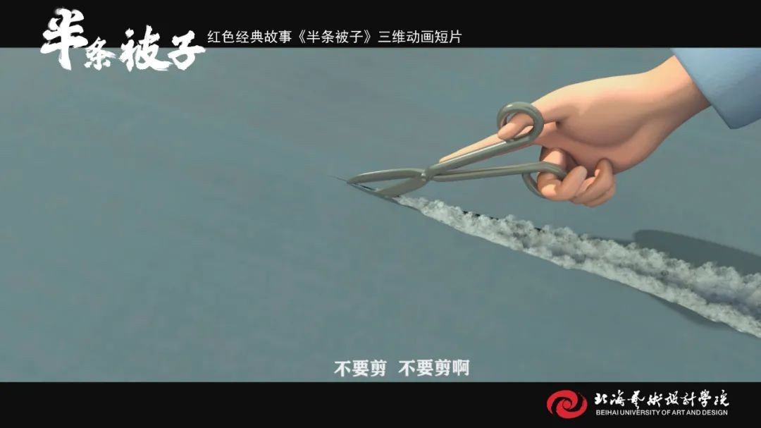《半条被子》师生创作团队 《半条被子》是我校动画与传媒学院18级在校学生在“建党百年”命题下制作的动画短片作品,取材于纪念红军长征胜利80周年大会上,习近平总书记讲述了82年前发生在湖南汝城县的“半条被子”的感人故事。3名女红军借宿在湖南汝城县沙洲村村民徐解秀家临走时,将自己仅有的一床被子剪下一半送给老人。什么是共产党?共产党就是自己有一条被子,也要剪下半条给老百姓的人。
