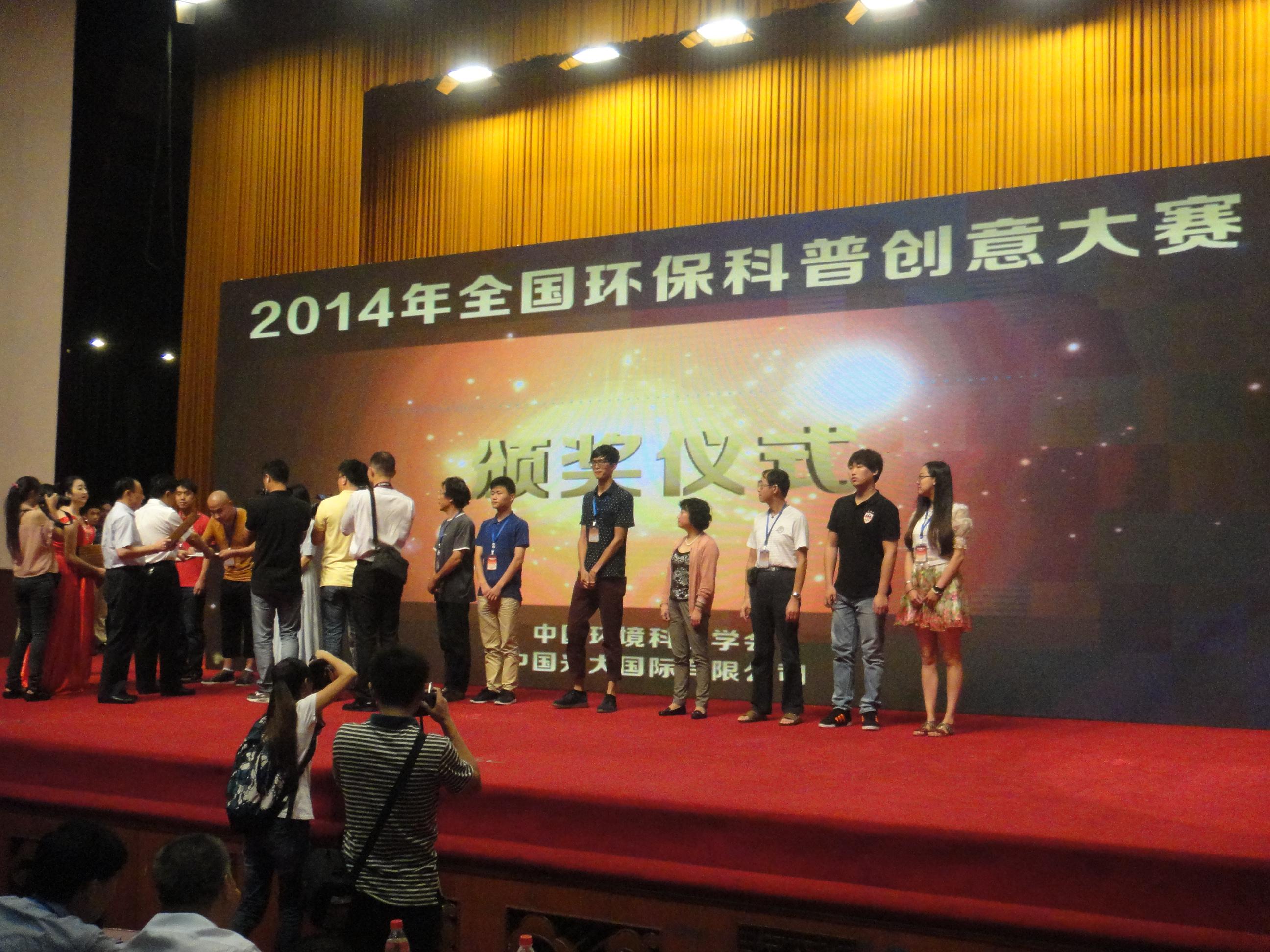 2014年全国环保科普创意大赛在成都胜利落幕,本次大赛共征集到参赛作品7057项,有300项作品进入全国总决赛,全国总决赛专家评审会共评选出获奖作品90项,其中特等奖1项,成年人组一等奖共7项,二等奖17项,三等奖23项;未成年人组一等奖共6项,二等奖11项,三等奖25项.