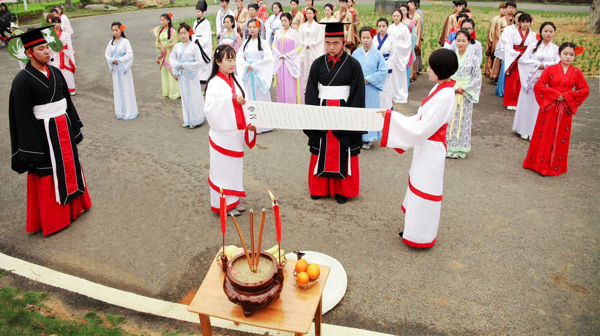 为弘扬中国传统文化,丰富学院学生课余生活,由北海艺术设计学院主办,北海艺术设计学院教育学院承办的“花朝节”祭拜活动于2016年3月20日上午9:30在园博园滨海之花广场、百色园举行。活动当天,在教育学院黄艳芳院长、蒙剑英班主任、康怡老师和熊秀峰老师的带领下,我院2015级艺术教育专业1、2班的学生身着汉服,向盛开的花树敬香酹酒,宣读祭文,表演颂花歌舞,并开展赏红、食花糕、击鼓传花等活动为百花庆生、为春天祈福。