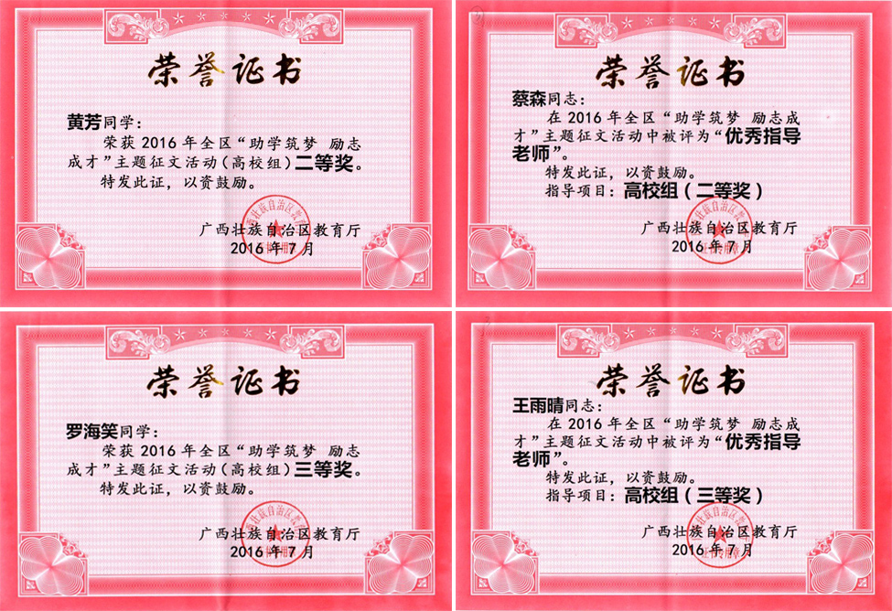 • 桂教资助〔2016〕20号关于公布2016年全区“助学筑梦,励志成才”主题征文活动获奖名单的通知: u/sszss/201611/15102408dbwj.pdf