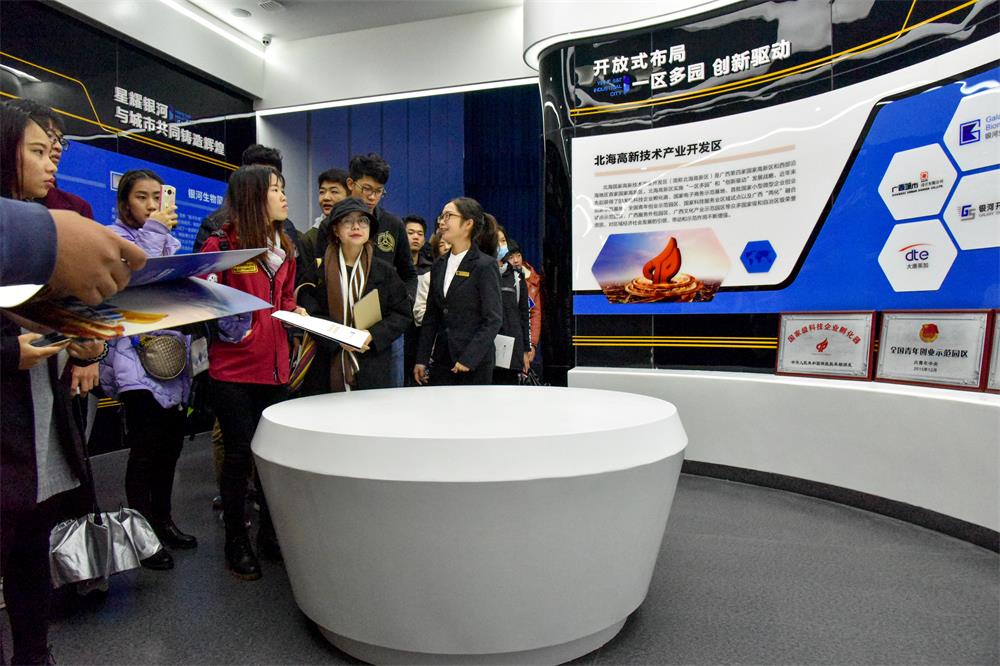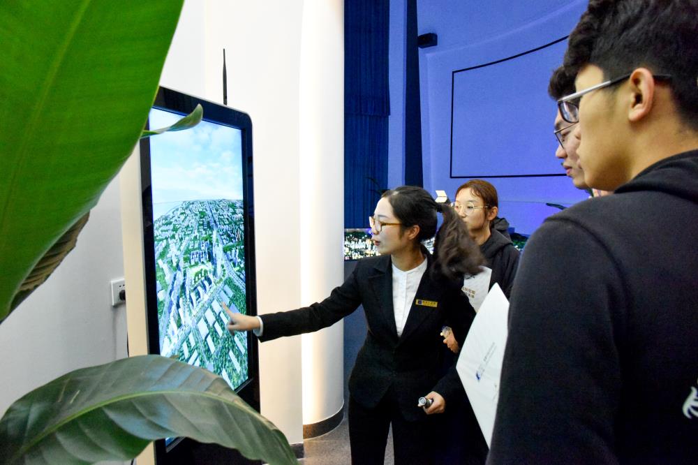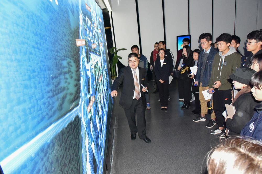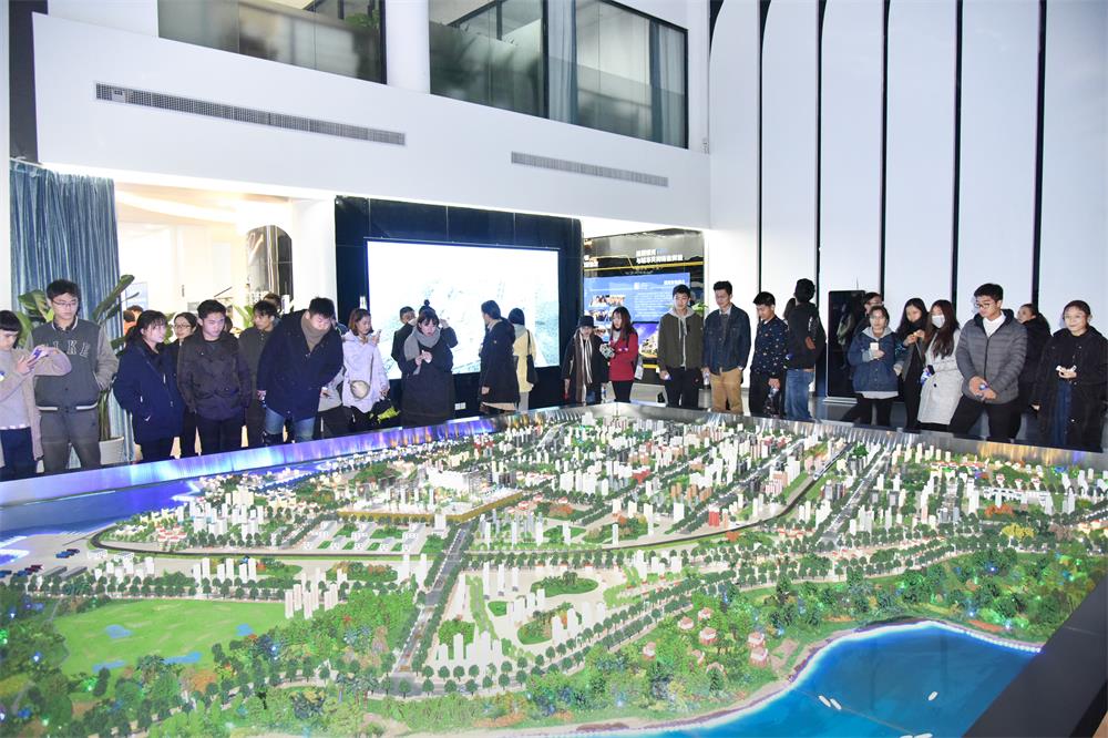 活动开始前,领导嘉宾与我院的学生一同参观了银河产业城服务中心的沙盘,并工作人员的解说下,了解关于银河产业城的规划和理念。
