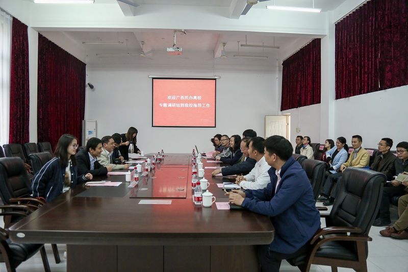 2017年3月15日下午,由自治区教育厅民办教育管理办主任蒋国平、广西教育研究院院长覃壮才、广西民族大学教育科学学院副院长王瑜、广西教育研究院助理研究员刘深、广西民族大学商学院颜申申组成的调研组一行五人到我院进行调研工作。我院执行董事郑超、党委书记贺争平、副院长张跃等领导热情接待了调研组,并在东校区综合楼会议室举行民办高校调研报告会。