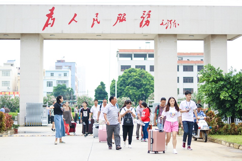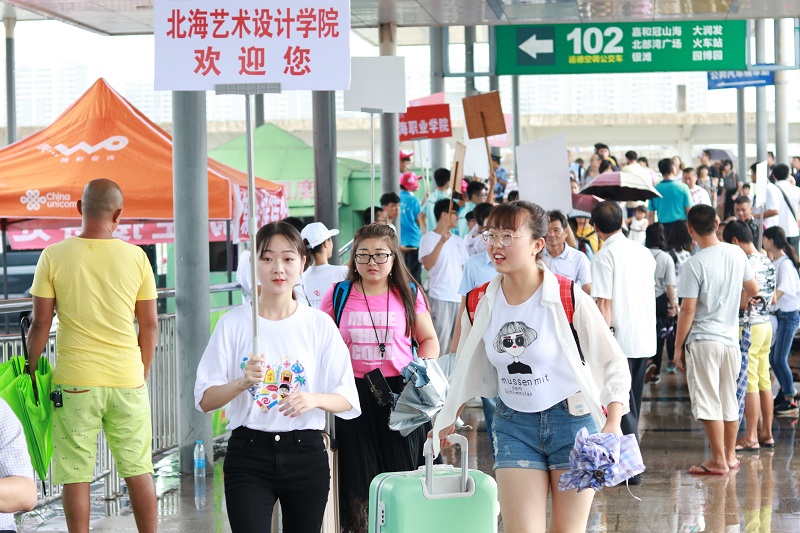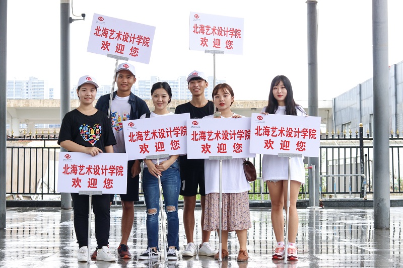 我院在校外安排了专车大巴负责接送到站的新生,提供更便利的接送服务。早上7点志愿者和迎新工作人员已经来到迎新地点进行布置等候,半个小时后全部迎新队伍便已全部到齐“严阵以待”。正值秋初,充满朝气的北海艺术设计学院上空下起了暴雨,然而这丝毫不减志愿者和迎新工作人员的热情,他们不畏艰辛,风雨里毫无畏惧的接过新生的行李,用最热诚的态度迎接着每一位新同学。因受暴雨影响,校园道路积水,此时我院领导在第一时间为校园的积水问题进行了紧急处理,迎接工作一切都在顺利进行中。