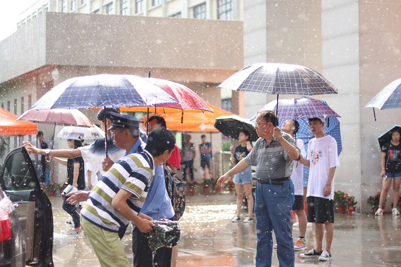 风雨中,迎新工作人员热情好似烈日当头,报到的场面依旧热火朝天。校内道路四周架起帐篷,大家以优异的服务去迎接新生,耐心的向家长讲解沟通,并亲自提起新生们的行李带着他们报名缴费、领取饭卡和军训服装。在志愿者们热情严谨的分工帮助下,新生们顺利的完成了报名和寝室入住。