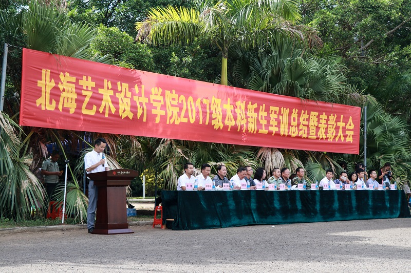 2017年9月29日下午16点整,我院2017级新生军训总结暨表彰大会在学院东校区操场隆重举行。我院校级党政、二级学院的领导、武警北海市边防支队机动大队的全体教官出席了大会。