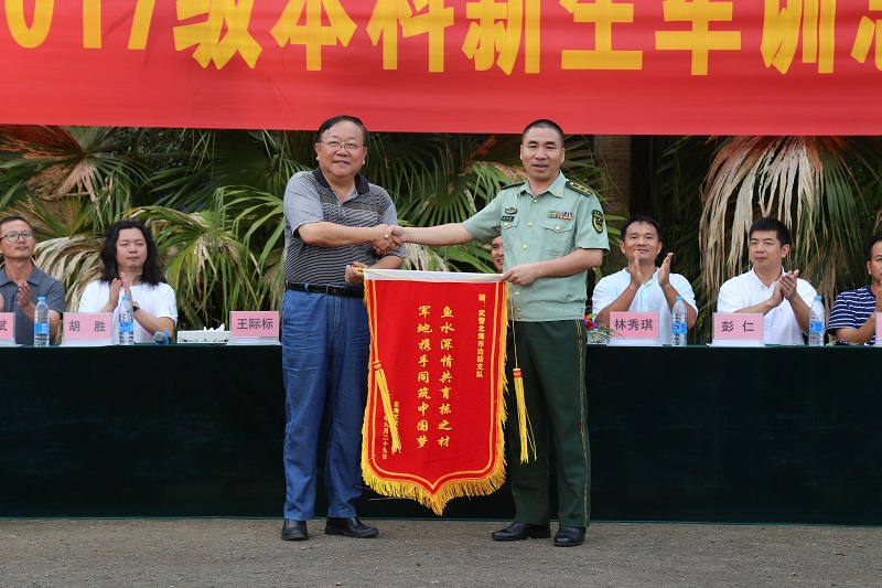 随后,党委书记贺争平代表学院向部队赠了锦旗,感谢部队对学校军训工作的大力支持。会上还分别对获得优秀学员奖、寝室优秀内务奖、合唱比赛优秀奖、军训会操优秀奖、全额奖学金奖等个人和集体进行表彰。