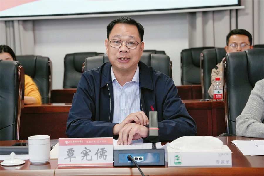 11月5日,北部湾大学党委副书记唐高华一行到我校开展交流活动,并同步推进党建与思想政治工作结对共建帮扶干部送任工作。当日,北部湾大学选派的三名党建思政结对共建帮扶干部正式到我校报到,标志着两校结对共建工作迈入实质推进、务求实效的新征程。为切实做好对接工作,我校党委书记覃宪儒,党委副书记陈毅华、彭仁、刘承初等校级领导热情接待唐高华一行,并在艺德楼八楼会议室举行党建工作交流暨结对共建帮扶工作组见面会。党委副书记陈毅华主持见面会。