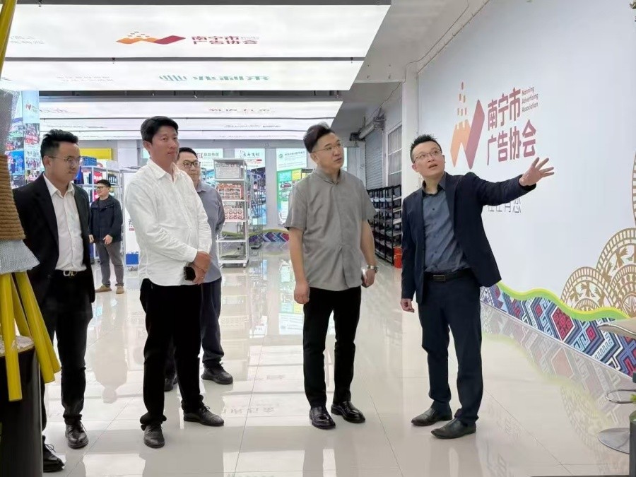 随后,学校一行到访南宁市广告协会,与协会及部分会员单位代表座谈。协会副会长刘兆钟详细介绍了南宁广告行业发展趋势、人才需求结构及行业标准建设情况。设计艺术学院副院长白建强介绍了学院视觉传达设计、数字媒体艺术等专业的建设与人才培养情况,希望借助协会平台推动课程内容与行业标准接轨。企业代表纷纷表示,当前广告行业正面临AI技术渗透、复合型人才短缺的发展现状,亟需兼具专业素养、实践能力与创新思维的高素质人才,希望深化与学校的校企合作,实现人才培养与岗位需求无缝衔接。双方围绕协同育人、共建实习基地、定向培养等议题深入交流,刘兆钟表示,协会将发挥平台优势,搭建学校与会员企业的沟通桥梁,助力艺术设计人才与行业需求精准对接。