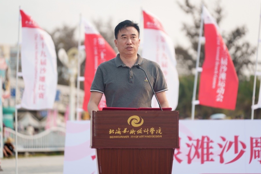 副校长陶立阳在致辞中表示,学校坚守“道德为本、艺术求精”办学理念,始终高度重视体育工作和职业素养的提升,已连续多年在北海银滩举办沙滩运动会与沙雕比赛,深耕体育育人与实践教学融合。活动培养学生综合能力,学以致用,既彰显 “团结第一、健康第一、参与第一”的体育精神,更实现传统创意与数字智慧的碰撞,展现新时代青年的想象力与创造力。在AI技术蓬勃发展的今天,艺术创作边界不断被打破,为艺术插上了腾飞的翅膀,体育承载着中华民族伟大复兴的梦想,陶立阳副校长寄语师生,体育精神与艺术追求一脉相承,希望广大学子以赛事为契机,在拼搏中锤炼意志、在创作中发挥艺术天赋,表现美、体验美、享受美,将青春活力转化为奋斗动力,为学校高质量发展与祖国建设贡献北艺力量。