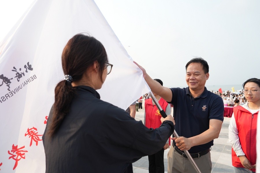 北海旅游集团副总经理李小军为沙雕代表队授旗