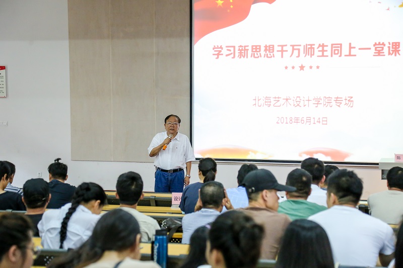 为深入学习宣传贯彻习近平总书记在北京大学师生座谈会和纪念马克思诞辰200周年大会上重要讲话精神,6月14日下午,我校开展“学习新思想千万师生同上一堂课”活动。钦州学院党委书记赵君教授和广西民族大学马克思主义学院院长陈媛教授共同为我校300多名教职员工授课。活动由我校党委书记贺争平主持。