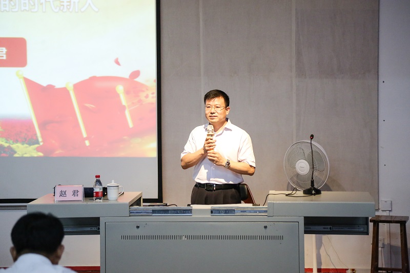 钦州学院党委书记赵君教授以“学习习近平总书记重要讲话精神,争做担当民族复兴大任的时代接班人”为题,紧密联系生活实际,深入讲解习总书记在北京大学师生座谈会讲话中对广大青年提出“爱国、励志、求真、力行”四方面要求。赵君书记指出广大青年学生要爱国,忠于祖国,忠于人民;要励志,立鸿鹄志,做奋斗者;要求真,求真学问,练真本领;要力行,知行合一,做实干家。同时,赵君书记强调要不断强化责任担当,争做爱国励志求真力行新青年,并提出要求做到将个人梦和中国梦有机结合,做新时代追梦人和圆梦人;增强责任感,做到“四个负责”;坚持“四个自信”,勇担时代大任。