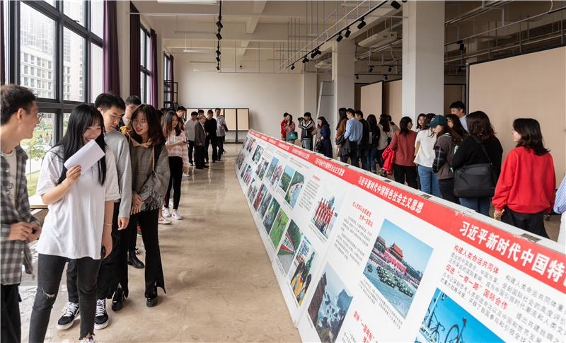 揭牌仪式结束后,我校开展了首场活动——《画说习近平新时代中国特色社会主义思想》展览。广大师生纷纷表示要加强学习,提高自己的素质和能力,通过自身努力,为国家建设多作贡献。