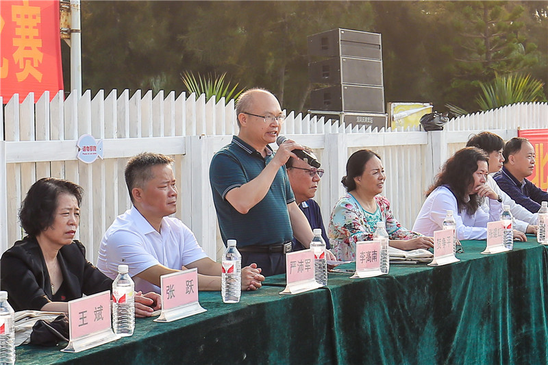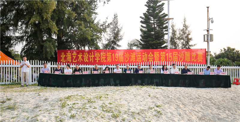 清晨的银滩,海风徐徐,万众瞩目的第十九届沙滩运动暨第十五届沙雕比赛,于2019年4月19号在美丽的北海银滩举行,8点30分开幕式正式开始。开幕式由我校副校长邱杰主持,党委副书记、副校长彭仁致开幕辞,党委书记李高南宣布运动会正式开幕。我校副校长张建虹、张跃、胡胜、王斌及二级学院领导等出席了开幕式。