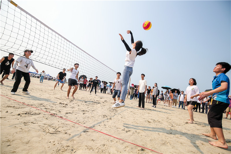 赛场上选手努力拼搏,场外同学积极摇旗呐喊,为各自班级的荣誉争光。整个沙滩运动场洋溢的青春活力如同天空的烈日骄阳,青春、蓬勃、骄傲。赛场每一处都穿梭着运动员傲人的身姿、昂扬的斗志。场外的欢呼声不绝于耳,回荡在银滩的空气中。