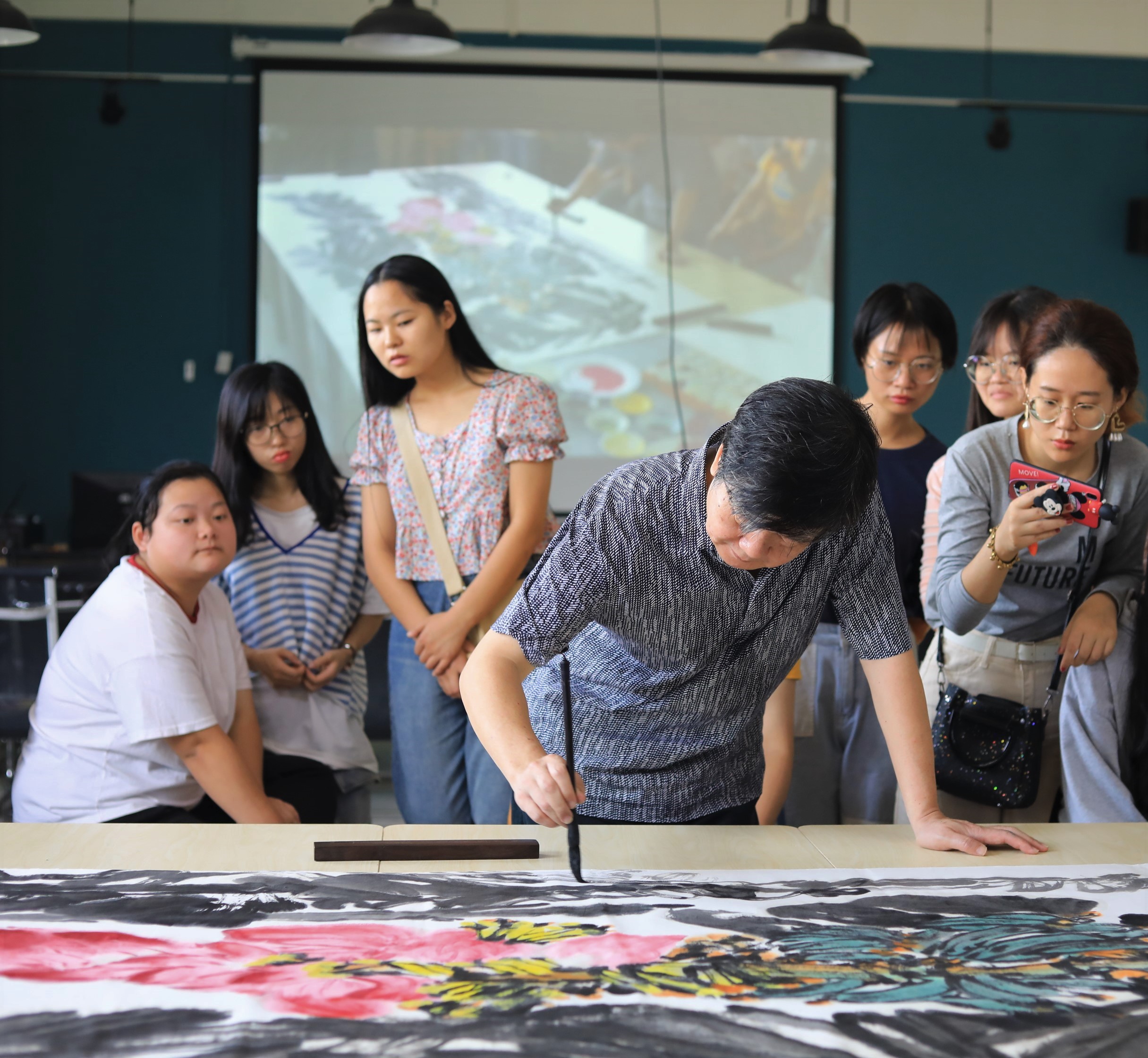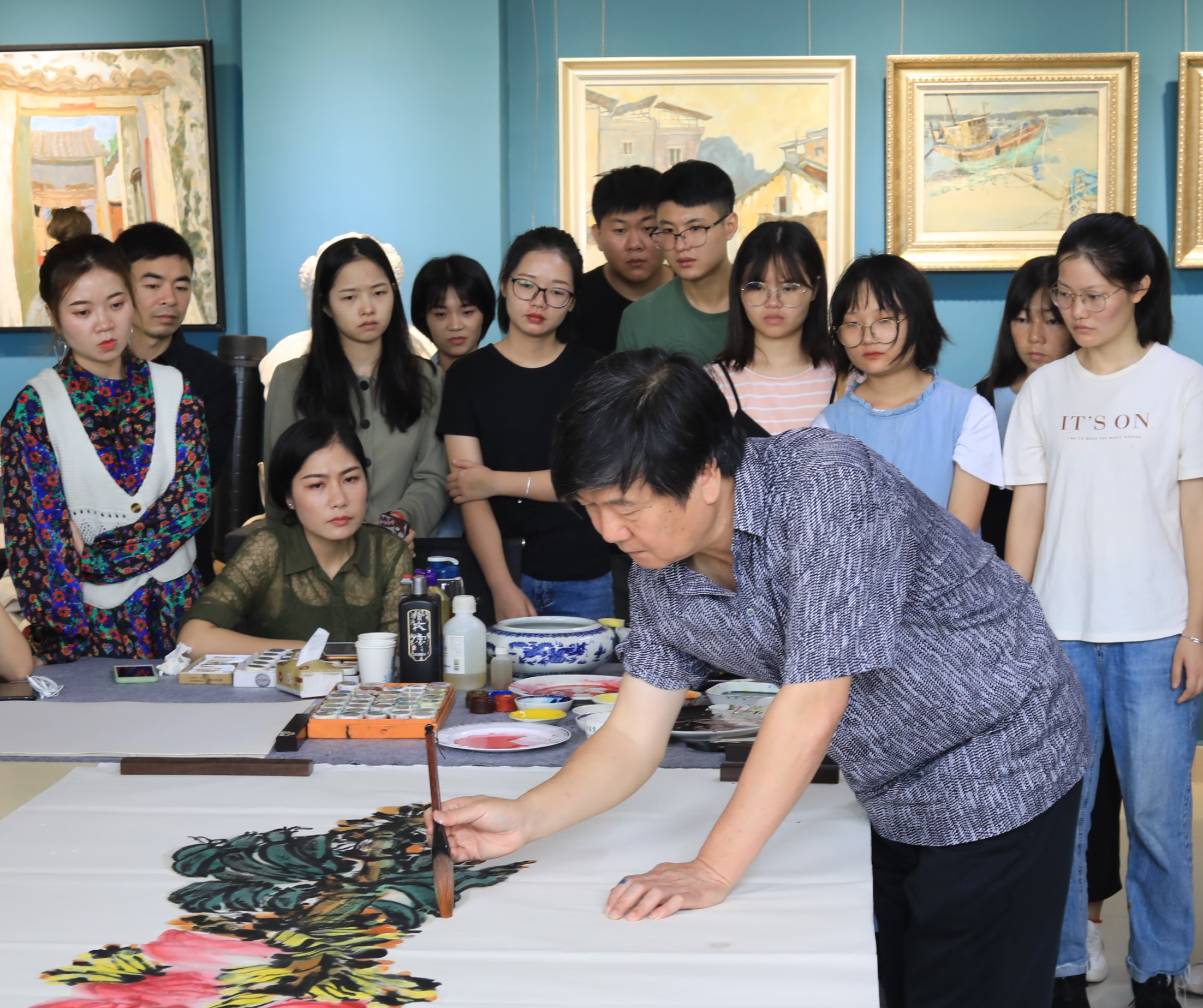 2019年11月17日上午,广西艺术学院艺术研究院副院长蔡智教授来到我校美术学院艺术楼313,为师生们进行国画现场创作示范。我校副校长胡胜、美术学院常务副院长龚为陪同出席活动,现场吸引了许多师生前来观摩学习。
