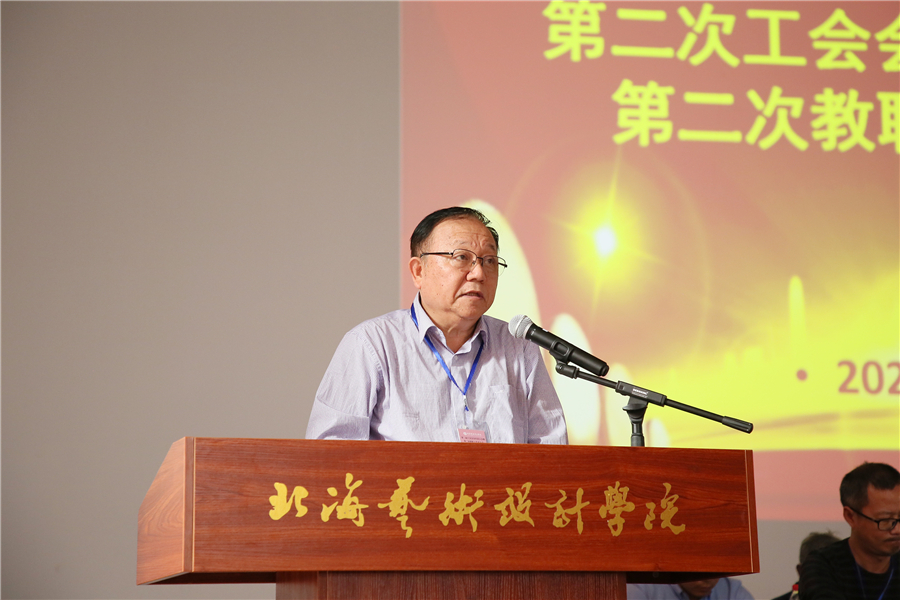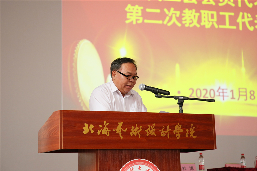 2020年1月8日下午,北海艺术设计学院第二次工会会员代表大会暨第二次教职工代表大会在西区大礼堂召开。大会由校党委副书记贺祖祯主持。