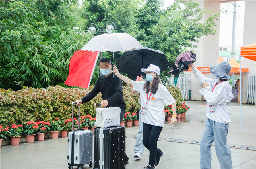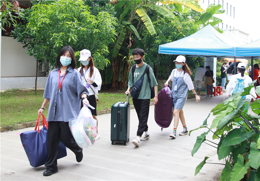 鲜艳的彩旗、醒目的指示牌,精神饱满的工作人员整装以待。为方便新生到校,学校在北海火车站、机场均设立了接站点,不间断发送班车接送新生至学校。学校门口设立专用通道,经过行李消毒、体温测量、健康码核验后进入学校,学校工作人员和青年志愿者“一对一”帮助学生搬运行李、引导学生前往指定地点进行报到注册。一张张热情的笑脸、一声声亲切的问候,学校热情周到的服务得到了新生和家长的高度赞赏。