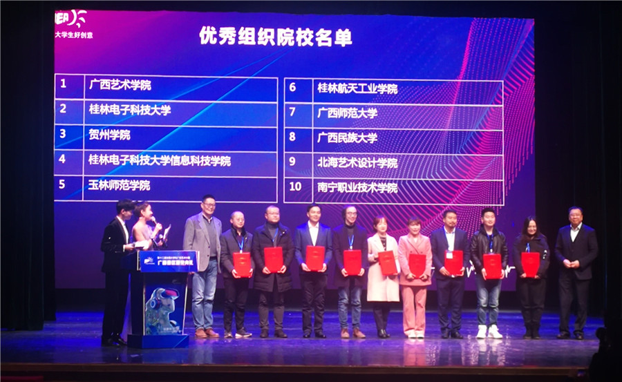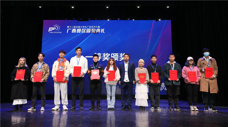 2020年12月15日,由广西壮族自治区教育厅、全国大学生广告艺术大赛广西赛区组委会举办的第十二届全国大学生广告艺术大赛(以下简称“大广赛”)广西赛区颁奖典礼在广西艺术学院南湖校区会演中心举行,我校荣获广西赛区一等奖4项,二等奖28项,三等奖38项的优异成绩,同时我校荣获“优秀组织奖”。