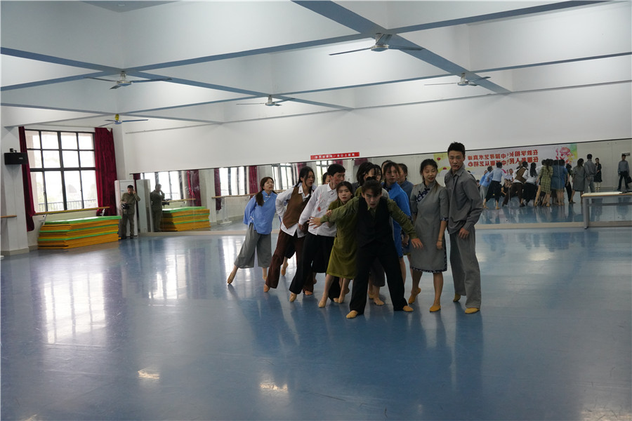 (参观学生排练演出节目《鸡毛信》)