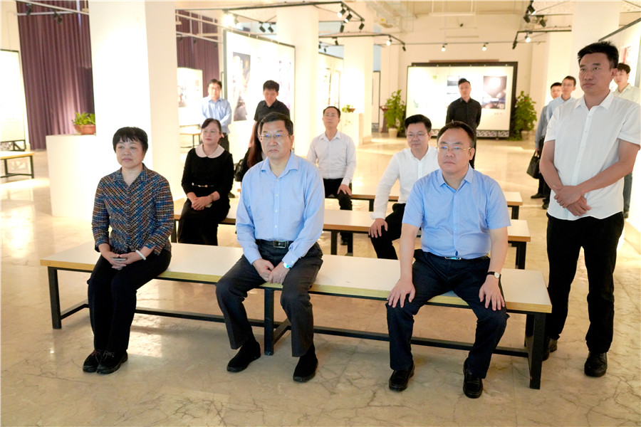 市领导彭鸣达、马南萍、刘伯贤及学校全体领导陪同调研并参加座谈会。(